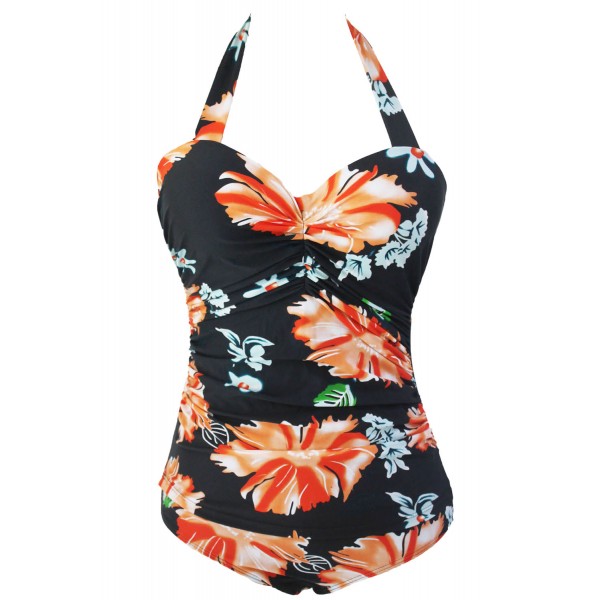 Maillot de bain femme 1 pièce monkini pin up motif floral