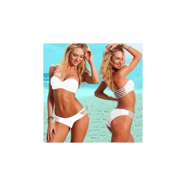 Sublime maillot de bain blanc effet bondage avec ses multiples lacets.