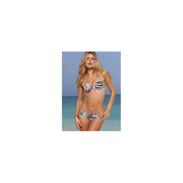 Maillot de bain motif zèbre et fleurs effet push up.