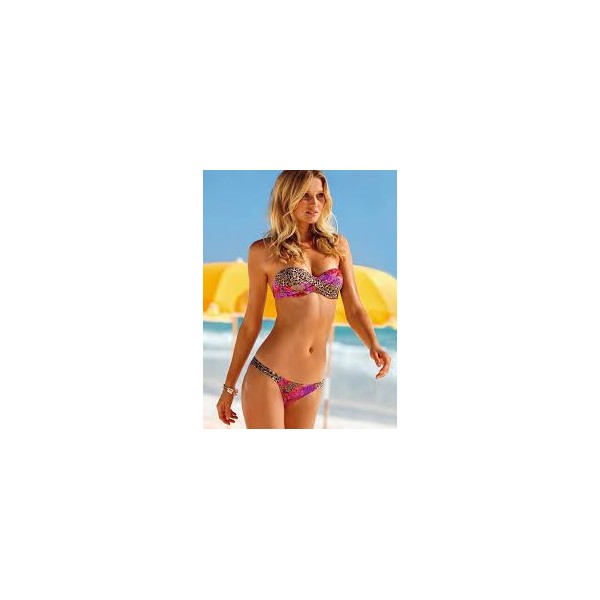 Bikini bandeau twist effet push up noir, blanc et rose - Maillot de bain femme 2 pièces