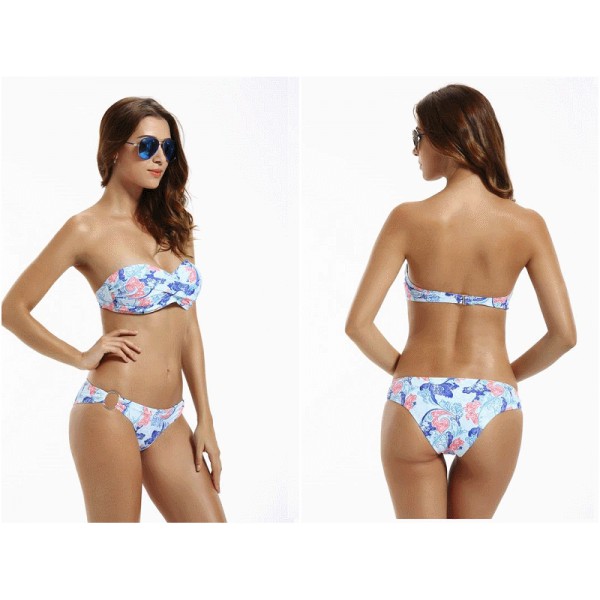 Maillot de bain motif barpoque florle ton bleu effet push up.