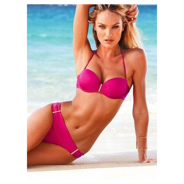 Sublime maillot de bain forme corbeille rose avec note dorée.