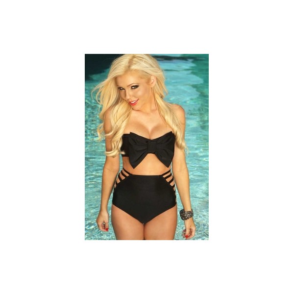 Style de haut : soutien-gorge forme bandeau avec rembourrage amovible. Multiples liens dans le dos et gros noeud dans l'entre-bonnets.