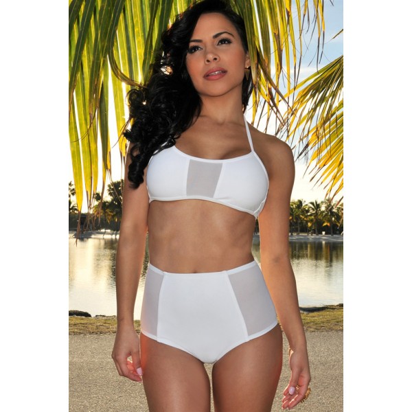 Magnifique Maillot de bain blanc style rétro avec culotte montante.