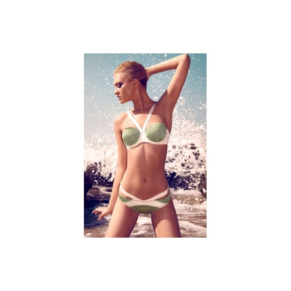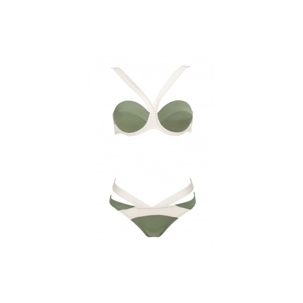 Bikini corbeille vert et blanc - Maillot de bain femme 2 pièces