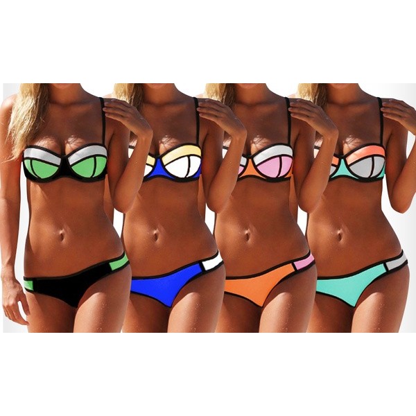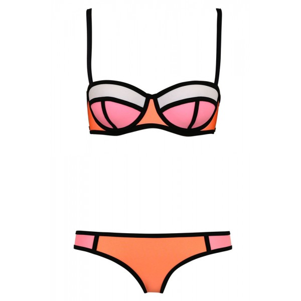 Sublime maillot de bain forme corbeille orange, rose et blanc.