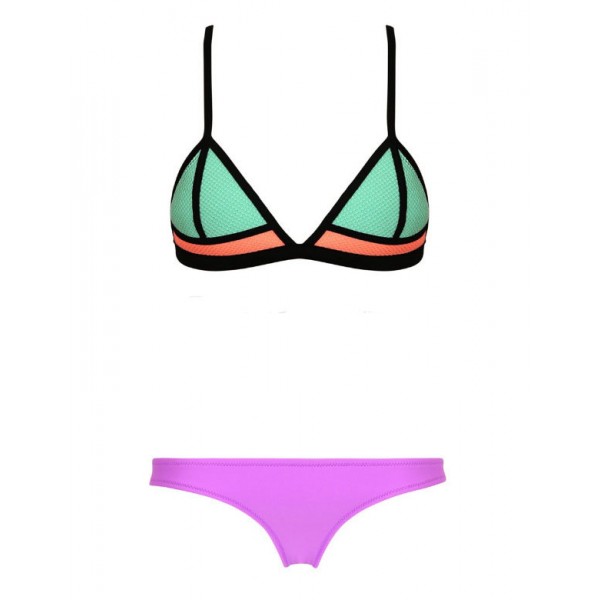 Maillot de bain 2 pièces triangle violet, vert et orange - bikini femme
