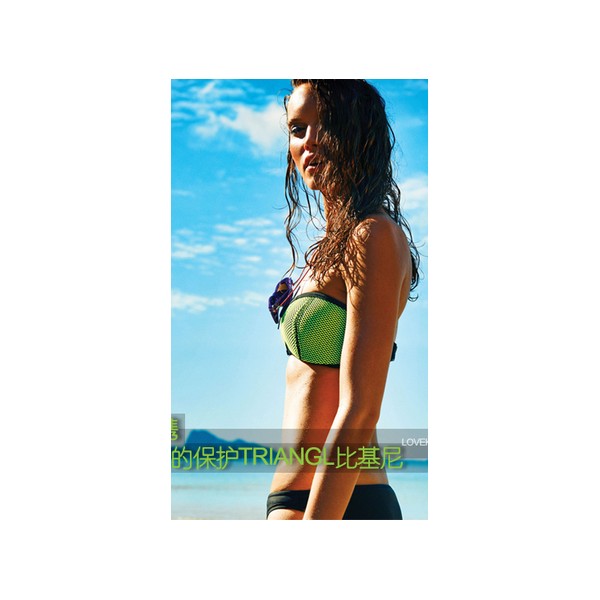 Maillot de bain haut bandeau résille zippé vert et noir.