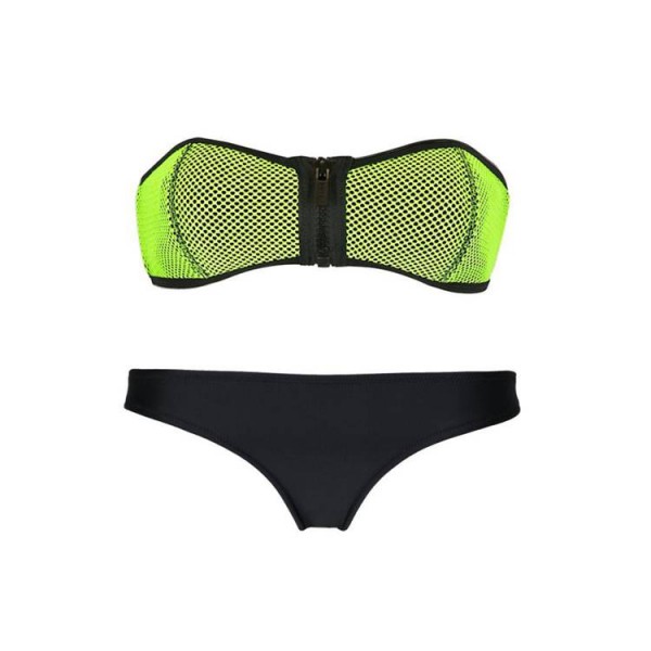 Bikini bandeau zippé vert et noir - Maillot de bain femme 2 pièces