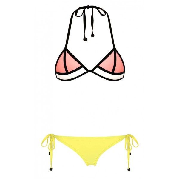 Maillot de bain 2 pièces triangle rose, blanc et jaune - bikini femme
