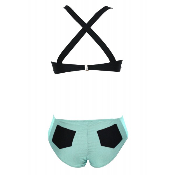 Bikini corbeille vert et noir - Maillot de bain femme 2 pièces