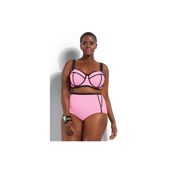 Maillot de bain femme 2 pièces forme corbeille effet push-up rose et noir.