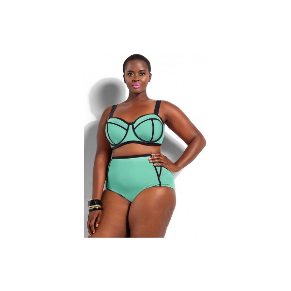 Maillot de bain femme 2 pièces forme corbeille vert