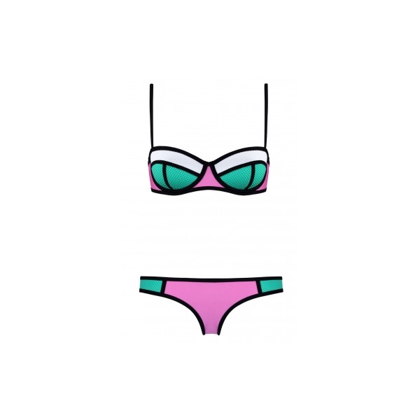 Sublime maillot de bain forme corbeille violet, vert et blanc .