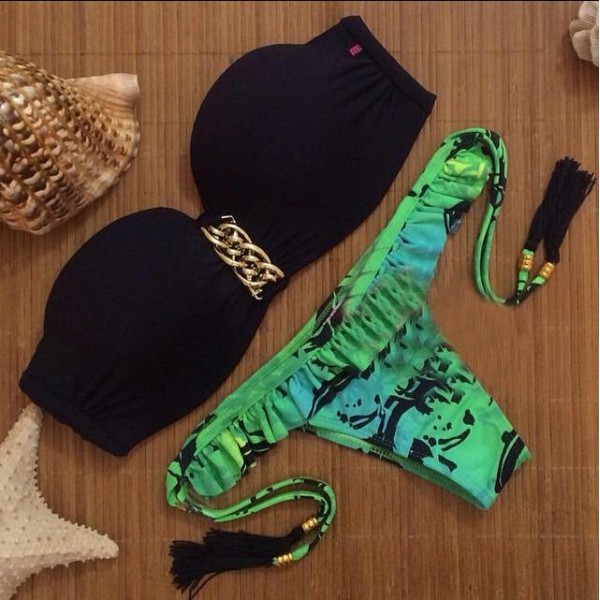 Maillot de bain 2 pièces soutien-gorge avec chaine dorée dans l'entre-bonnet.