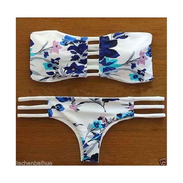Bikini bandeau motif floral - Maillot de bain femme 2 pièces