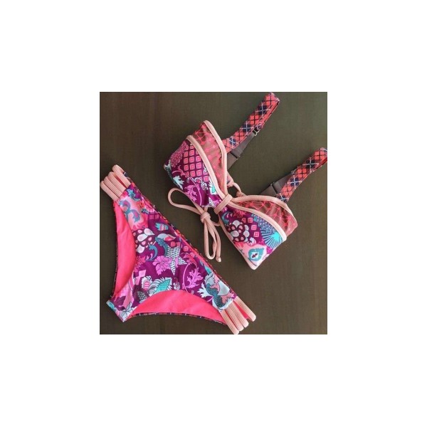 Bikini bandeau ton rose - Maillot de bain femme 2 pièces