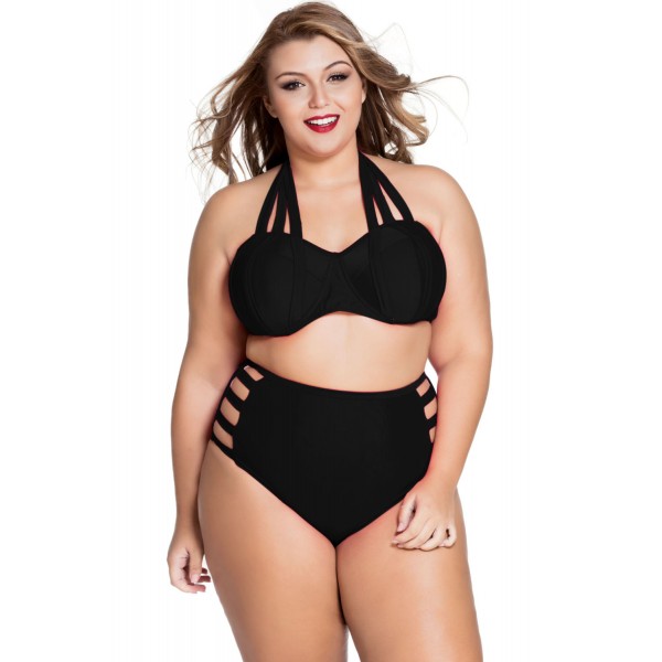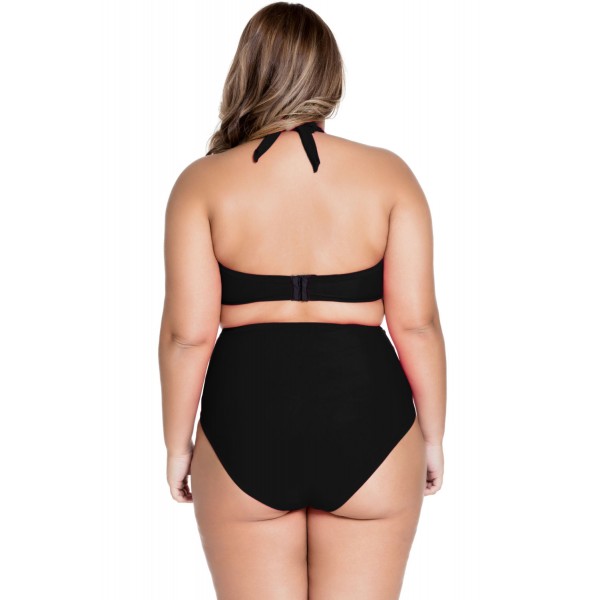 Maillot de bain femme 2 pièces forme corbeille noir.
